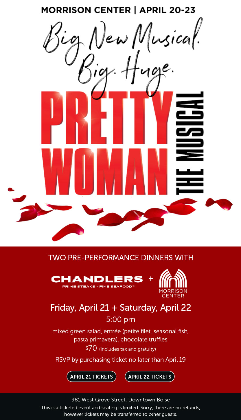 Select Entrées: Petite Filet, Seasonal Fish or Pasta Primavera